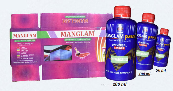 Universal stainer is a water soluble high tint, non toxic and non fading pigment that gives colour to your plastic emulsion, enamels, oil paints and distempers. It is available in eight different colours including